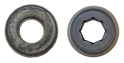 Sammenligning: Pakring til venstre med tydelige spor af forurenet kølevand