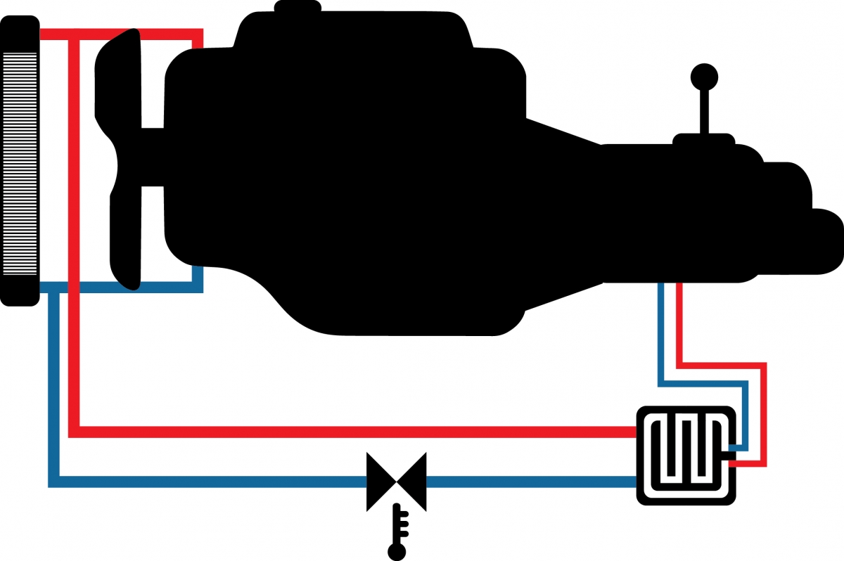 Bei Fahrzeugen mit diesem Getriebetyp ist ein separates Thermostat für das Getriebeöl montiert. Das Problem entsteht in Situationen, in denen man beispielsweise lange Zeit bergab fährt, ohne dass das Gaspedal benutzt wird und das Getriebe in Aktion ist. In solchen Situationen können sowohl die Kühlwasser- als auch die Getriebeöltemperatur unterhalb der normalen Betriebstemperatur fallen.
