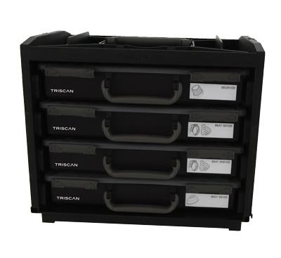 Im Deckel des Sortimentskastens befinden sich Informationen über die Position der Ablassschrauben in dem Kasten, Dimensionen, Gewinde, Montagewerkzeug, Querverweise und Artikelnummer für das Wiederbestellen loser Ablassschrauben. Die Ausnahme hierzu ist die Plastikablassschraube mit der Triscan Nummer 9500 0929, die in 5-teiligen Tüten nachbestellt werden kann.
