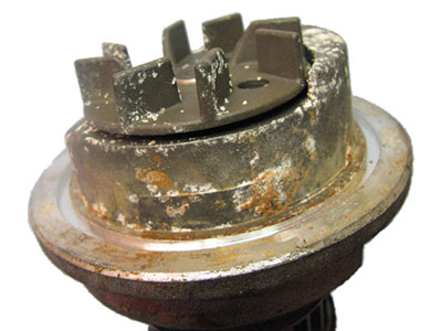 Сравнение: левая прокладка с четкими следами загрязненной охлаждающей воды