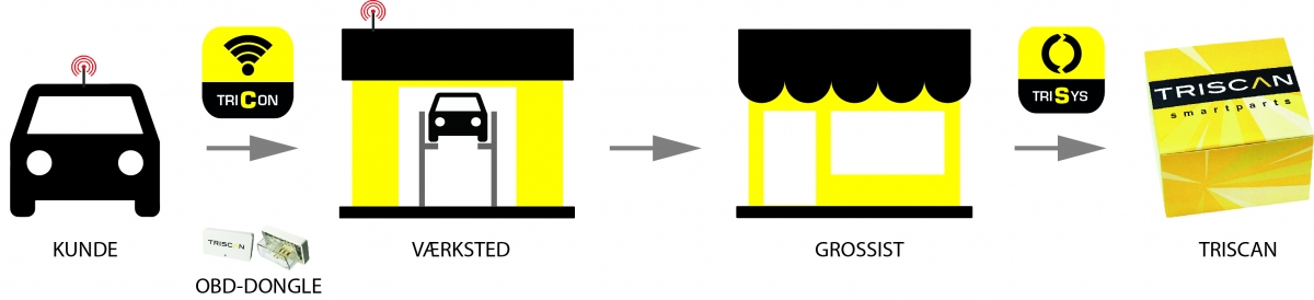 Men inden længe udbygges TriSys også med TriCon - en prisbillig connectivity-/OBD-dongle løsning. Hermed får værkstedet adgang til køretøjsdata, som er væsentlige i forhold til at sikre pålidelig drift af kundernes køretøjer og samtidig undgå ubehagelige overraskelser. Værkstedet får eksempelvis information om både forestående og aktuelle fejl, kilometerstand, batterispænding m.v. Med denne information kan værkstedet handle proaktivt i forhold til at tilbyde fejlsøgning, reparation og service.