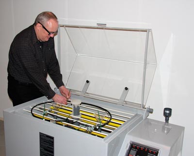 Vi har gode erfaringer med vores interne testfaciliteter og vil fortsat investere og udvide vores kompetencer inden for dette område. Vi har netop indkøbt et klima-/salttågekammer, med hvilket vi kan udføre accelereret levetidstest af korrosionsbeskyttelse.